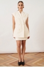 Жилет женский, полуприлегающего силуэта, из плотной костюмной ткани. Модель с V-образным вырезом горловины. Застежка двубортная. Перед оформлен талиевыми вытачками и декоративным прорезным карманом «в рамку» на левой стороне груди. Плечевой пояс расширен, пройма обработана обтачкой. Спинка со средним швом и рельефами. Изделие на притачной подкладке.