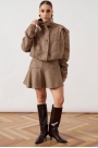 Комплект женский двухпредметный в стиле спорт-шик, состоящий из куртки-бомбера и юбки, выполнен из костюмной ткани.
