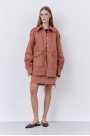 Юбка джинсовая в цвете зеленый мох с карманами по переду. Верх юбки обработан поясом. По спинке отрезная кокетка и накладные карманы, по которым установлены кнопки.