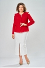 Жакет полуприлегающего силуэта. По полочке и спинке расположена отлетная кокетка, по низу изделия баска. Рукава длинные с открытым плечом. Структурированные плечи. Застежка на петли пуговицы. Жакет без подкладки. Низ изделия подшит на плоскошовной машине. Юбка прямого силуэта с завышенной линией талией. По переднему полотнищу расположены карманы хулиганы. На задней половинке юбки расположена кокетка. Застежка на молнии, пуговицу. Низ обработан швом в подгибку с открытым срезом.
