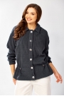 Бомбер прямого силуэта с длинными спущенными рукавами, низ рукава обработан резинкой. По спинке кокетка, на кокетке пришит декоративный элемент. По переду карман обманка. Застежка на петли пуговицы. Низ изделия подшит на плоскошовной машине. На линии талии настрочена кулиса, регулируется по ширине. Изделия без подкладки.