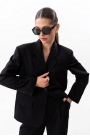 Жакет прямого силуэта, с увеличенной линией плеч, с отрезным бочком, на левой полочке листочка. Жакет на поливискозной подкладке. Спереди прорезные карманы с клапаном. Спинка со средним швом, отрезным бочком. Воротник пиджачного типа с отложным лацканом. Рукав втачной, двухшовный, со шлицей и пуговицами. Длина жакета по среднему шву спинки 68 см. Длина рукава от удлиненного плеча 60 см. Параметры жакета в готовом виде в 44 размере: Ширина изделия на уровне глубины проймы 106 см, ширина на уровне линии талии 103 см, ширина изделия на уровне линии бедер 106 см. Ширина рукава по низу 32 см. На фото: брюки S-3628, шорты S-3629, блузка S-7631 Длина жакета по среднему шву спинки 68 см. Длина рукава от удлиненного плеча 60 см. Параметры жакета в готовом виде в 44 размере: Ширина изделия на уровне глубины проймы 106 см, ширина на уровне линии талии 103 см, ширина изделия на уровне линии бедер 106 см. Ширина рукава по низу 32 см. На фото: брюки S-3628, шорты S-3629, блузка S-7631