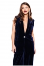 Жилет из бархата на трикотажной основе, прямого силуэта, однобортный, с центральной застежкой на 1 петлю и 1 пуговицу, на подкладке. Детали переда с талиевыми вытачками, отрезными бочками и прорезными карманами в рамку. На левой полочке нагрудный карман с листочкой. Спинка со средним швом и талиевыми вытачками. Воротник – шалевый с фигурным краем.
