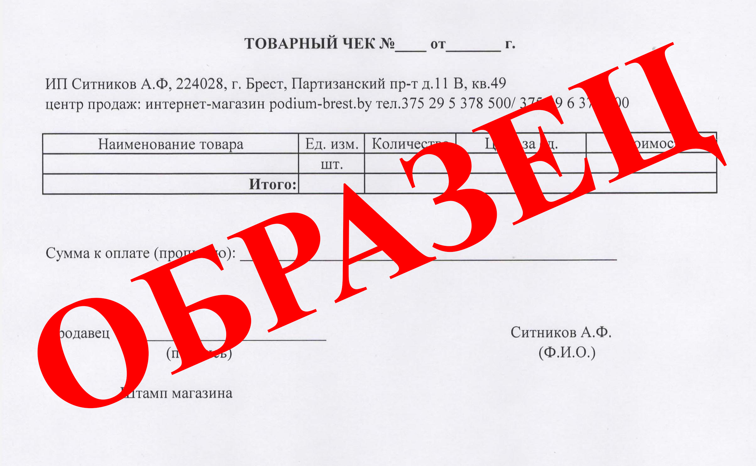Образец товарного чека: